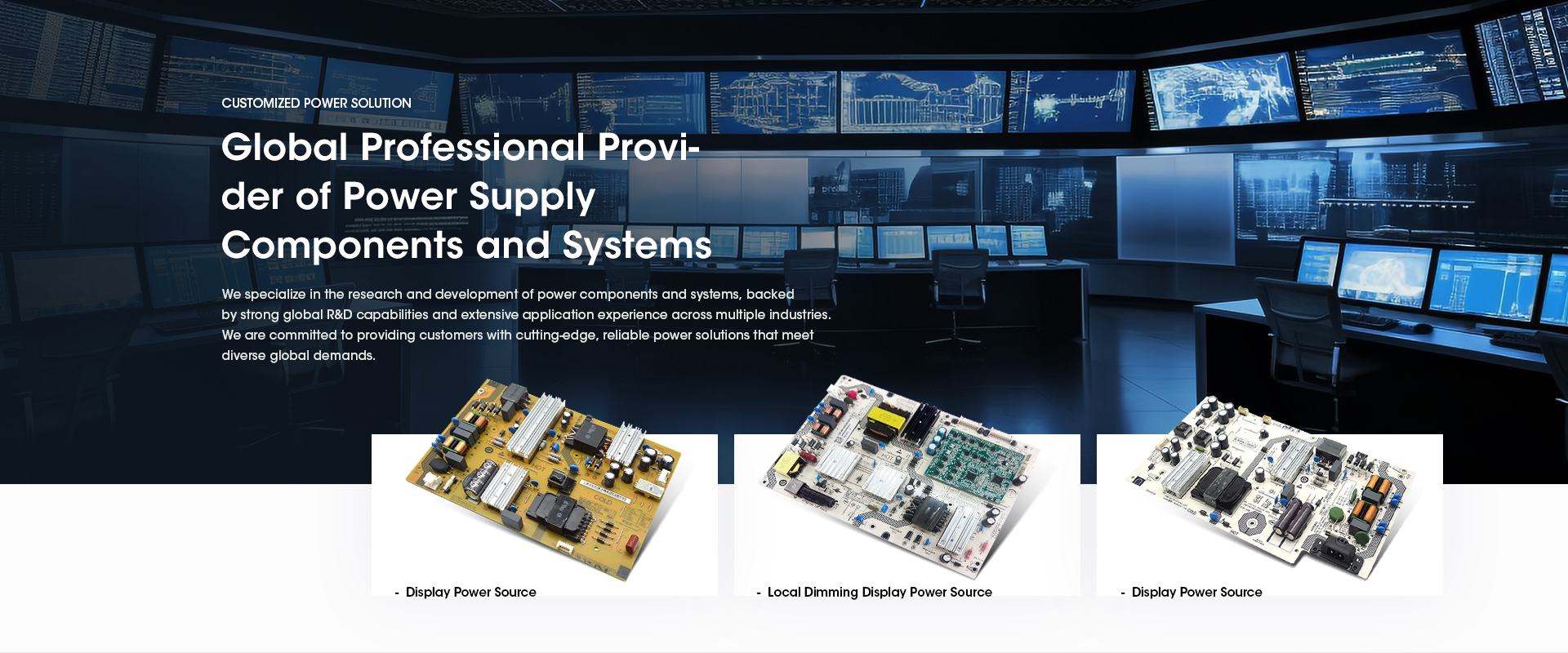 Our products encompass three major categories: power supplies for smart home appliances, power supplies for intelligent OA office equipment, and customized power supplies for renewable energy and industrial applications. These products are widely used in numerous industries such as LED TVs and displays, smart home appliances, small home appliances, intelligent OA office equipment, wind power, energy-efficient lighting, the internet, new energy vehicles, offshore vessels, medical care, and more.